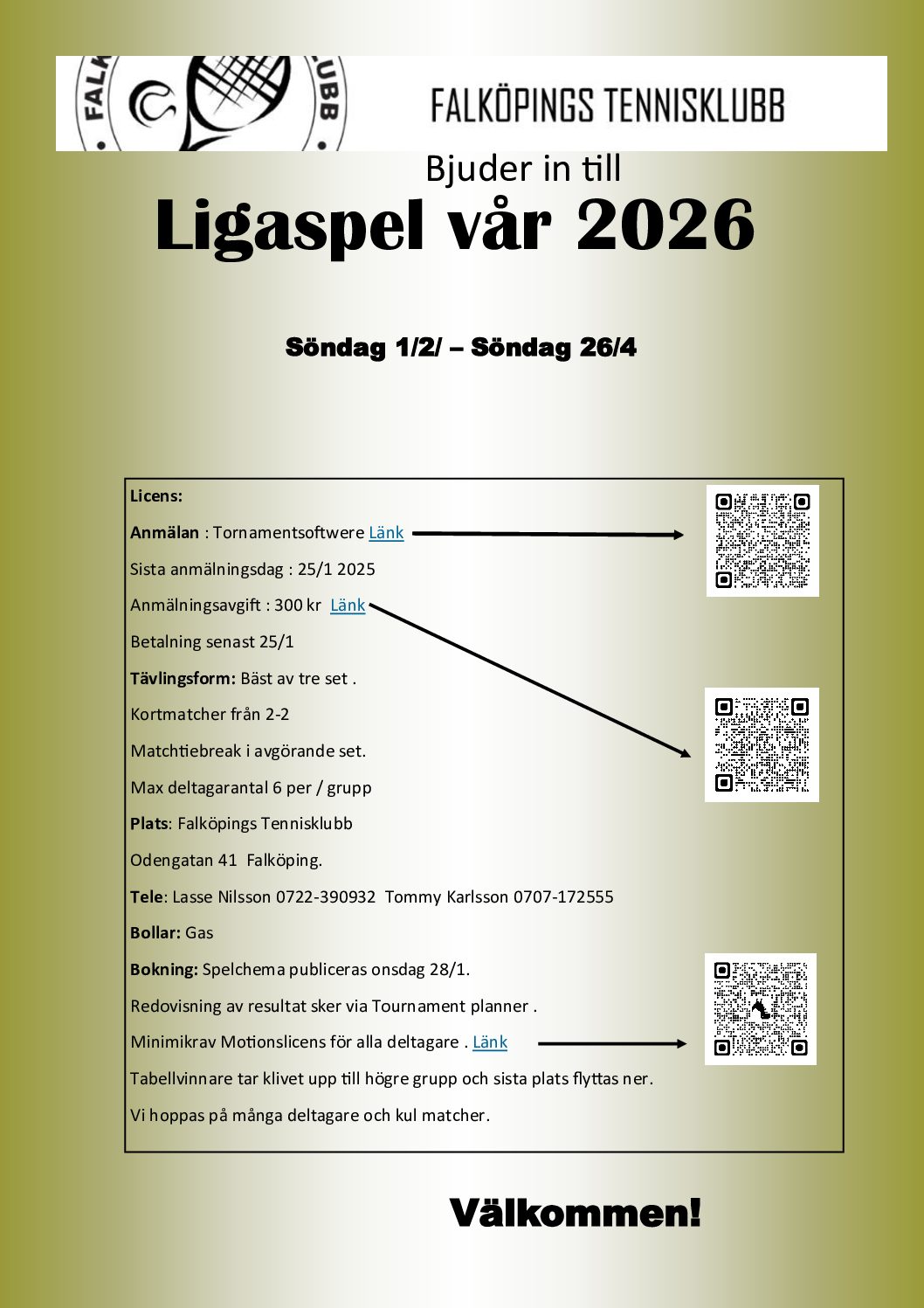 Ligaspel Vår 2026januari 15, 2026Falköpings Tennisklubb inbjuder till ligaspel för medlemar. Spelar du i… Läs mer Ligaspel Vår 2026